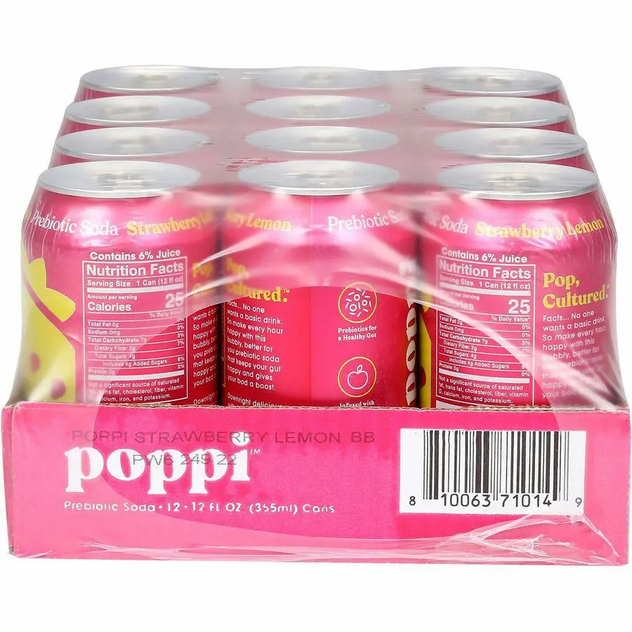 Poppi Strawberry Lemon-Flavored Prebiotic Soda – Ready-to-Drink – 12 fl oz (355 mL) – 12 / Carton